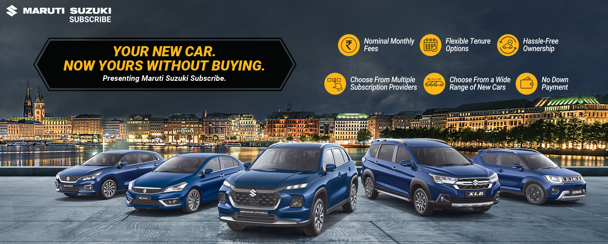 Maruti Suzuki Subscribe enables all customers to enjoy driving their preferred Maruti Suzuki cars without having to deal with all the financial responsibilities that come with owning a car.All you need to do is opt for a monthly subscription plan at a fixed monthly fee, which includes the routine maintenance and insurance costs, and choose a flexible tenure. At Bhargavi Automobiles Pvt Ltd in, , Tirupati, all Hatchback, Sedan, SUV, the MUV models line-up includes Baleno, Invicto, EVitara, Jimny, Ciaz, Ignis, Fronx, Grand Vitara, XL6. Here, you will enjoy Maruti Suzuki Subscribe benefits such as: